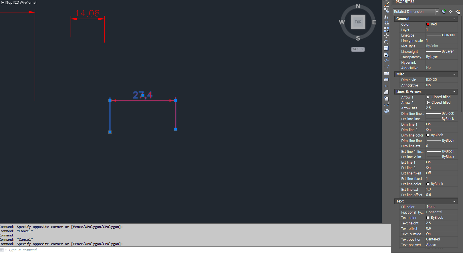 치수선을 클릭하면 "Rotated Dimension"