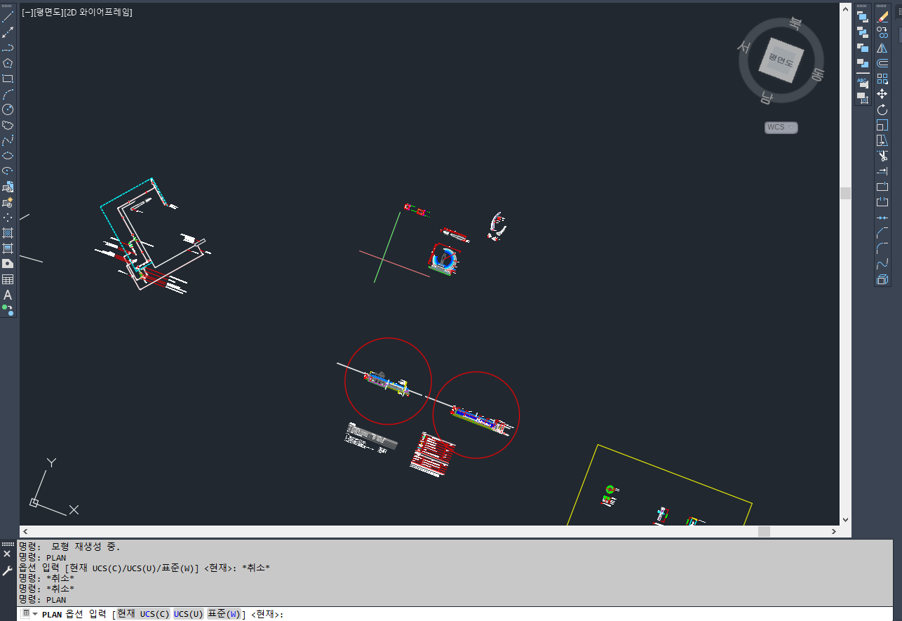 상단 이미지 오른쪽 상단부에 있는 WCS 에서 평면도를 클릭하면